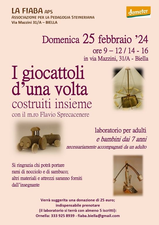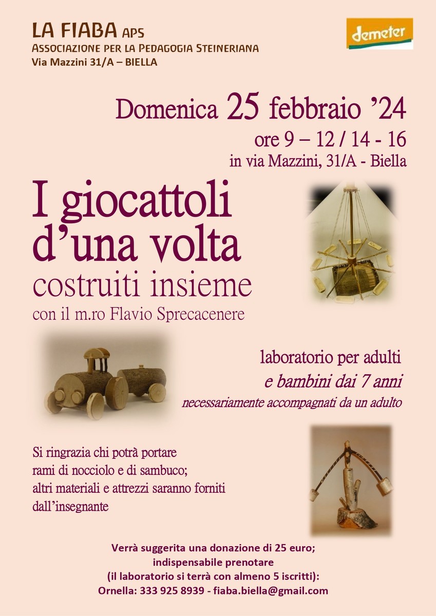 Il primo si terrà domenica 25 febbraio dalle 9 in via Mazzini a Biella. Si tratta di un laboratorio per adulti e bambini dai 7 anni necessariamente accompagnati da un adulto.