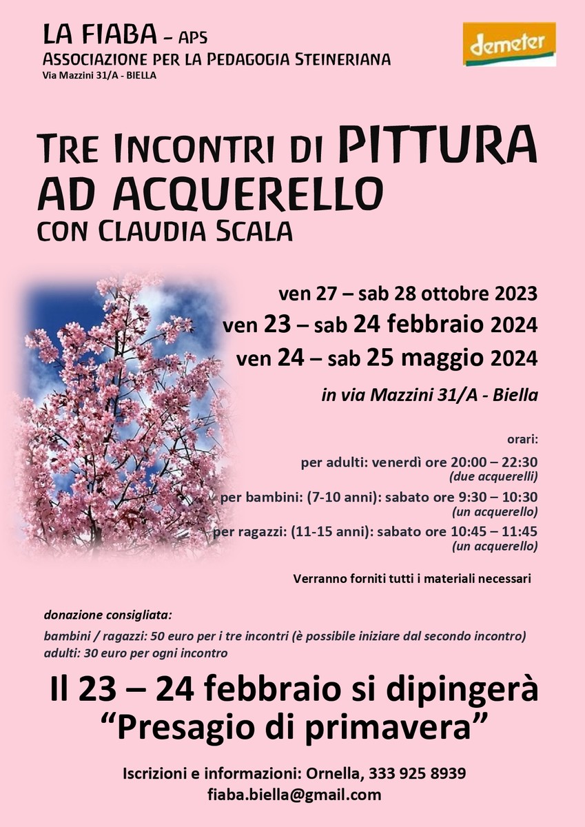 Sempre in via Mazzini saranno organizzati dei corsi di pittura venerdì 23 e sabato 24 febbraio e venerdì 24 e sabato 25 maggio.