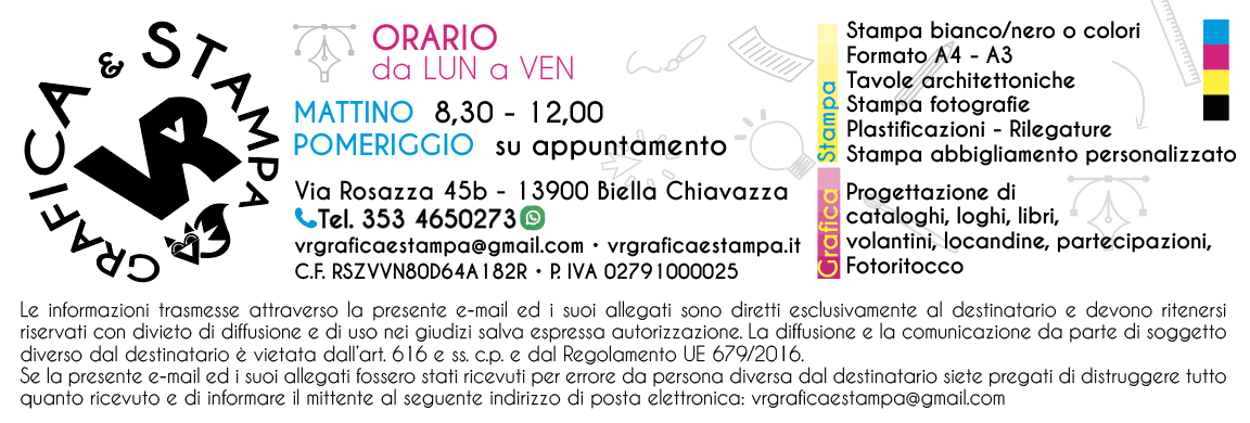 VR Grafica e Stampa è a Biella, Chiavazza in via Rosazza 45/b - www.vrgraficaestampa.it/