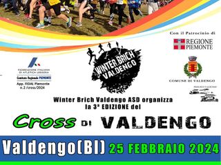 Winter Brich Valdengo ASD (VC069) organizza invece il domani, domenica 25 febbraio a Valdengo, la 3a edizione Cross di Valdengo, gara di corsa campestre valida come Trofeo Piemonte Cross giovanile, campionati regionali individuali di corsa campestre promozionale, Prova selezione rappresentativa CM/CF. La gara è riservata ai tesserati Fidal delle categorie Ragazzi/e, Cadetti/e, Esordienti EM10/EF10, EM8/EF8, EM5/EF5.