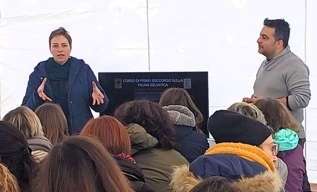 La dottoressa Valentina Bruson - la veterinaria che si occupa degli animali selvatici del Centro Recupero Nata Libera – ha invece affrontato il tema delle zoonosi, cioè delle malattie che gli animali possono trasmettere all’uomo, fornendo indicazioni utili a riconoscerle durante il recupero di un selvatico e quindi a proteggersi adeguatamente. I partecipanti – oltre 40, tra iscritti al corso e volontari di Nata Libera - hanno sfidato il freddo per seguire con interesse l’attività di formazione (ovviamente in un gazebo riscaldato!) e i momenti conviviali, che hanno permesso di conoscere il rifugio e di scambiarsi esperienze e informazioni. Visto l’interesse suscitato dall’iniziativa, sono in programma altri incontri di formazione e escursioni guidate in natura.
