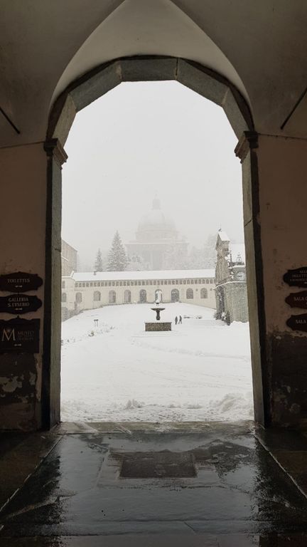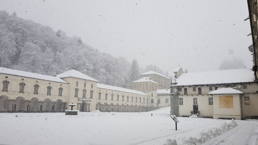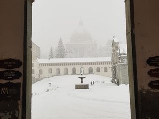 Sono meravigliosi gli scatti che stanno arrivando dal Santuario di Oropa, completamente imbiancato e ricoperto da una fitta coltre di neve. Il paesaggio è davvero suggestivo.