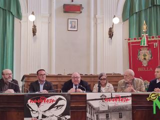 con Giuliano Ramella, Walter Trono, Elisabetta Barletta. Presentazione del volume a fumetti che racconta il territorio biellese.
