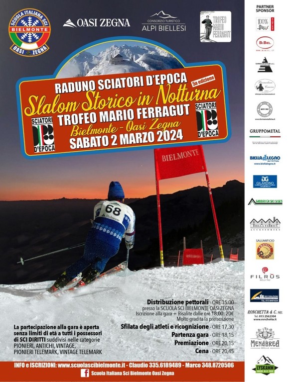 Sabato 2 marzo torna sulle piste di Bielmonte l'appuntamento con il fascino dello sci vintage. Uno speciale slalom storico in notturna dedicato al maestro Mario Ferragut che nel 1956 fondò la Scuola Sci di Bielmonte. L’evento, per la sua particolarità, è ormai considerato quasi una rievocazione storica dove sport e costume della seconda metà del XX secolo coinvolge sportivi ma non solo. La partecipazione come pubblico a questa gara d’antan è infatti libera e tutti gli spettatori sono invitati a vestirsi anch'essi con abiti vintage dell'epoca. La gara è aperta a tutti con la sola condizione della partecipazione con sci diritti.