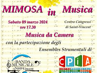 Un evento musicale in occasione della Festa della Donna ha avuto luogo sabato 9 marzo al Centro Congressi di Saint-Vincent: gli ensemble strumentali del CPIA Biella-Vercelli e di Anbima Provincia di Biella si sono uniti alla Banda musicale di Saint-Vincent per un concerto di musica da camera, diretto a dieci mani.