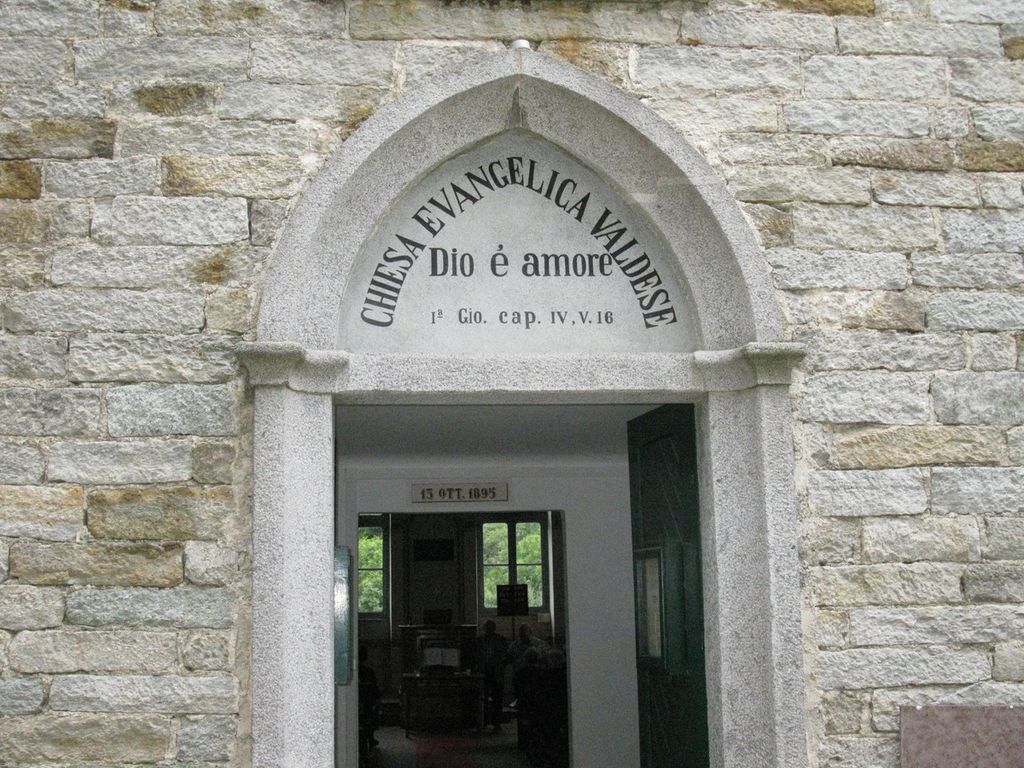 “…Nel centro del paese e dirimpetto alla Chiesa parrocchiale si erge un modesto edificio di granito alto tre piani fuori terra, nel primo dei quali ha sede la scuola, nel secondo il tempio propriamente detto e a cui si accede per un bel vestibolo e nel terzo l’abitazione del Pastore. È il tempio evangelico sulla cui bella facciata sventola la tricolore bandiera...” 1