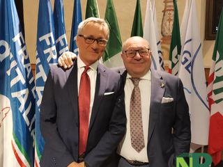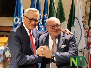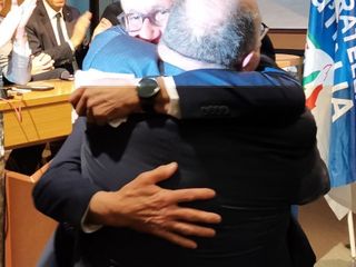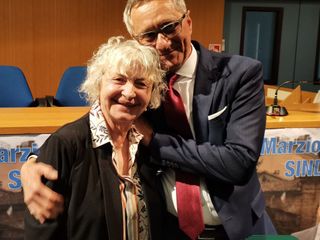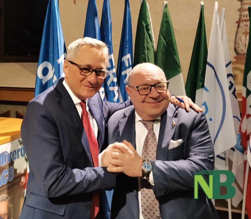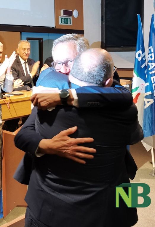 Con un abbraccio e una calorosa stretta di mano si è tenuto il passaggio di consegne tra il primo cittadino uscente Claudio Corradino e il candidato sindaco della coalizione di centrodestra Marzio Olivero.