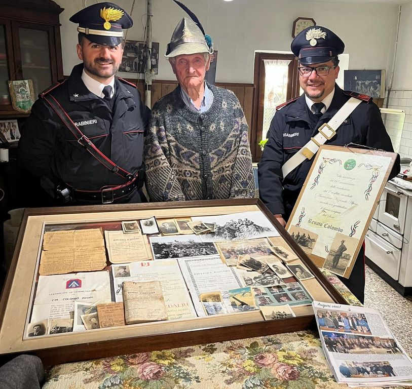 L’ultracentenario ha mostrato ai Carabinieri una teca contenente foto con i commilitoni e riconoscimenti combattentistici avvenuti in guerra. I militari non perdevano occasione per illustrare all’Alpino 103 enne il tema legato alla prevenzione contro le truffe in danno delle persone anziane, che vede impegnati loro stessi in ogni angolo d’Italia.