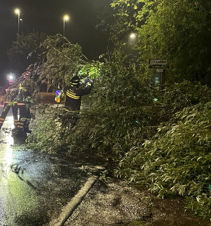 In entrambi i casi, sono state segnalate piante cadute sul ciglio della strada. In foto, il fatto accaduto alla Spolina. Le squadre hanno provveduto a rimuovere gli alberi e mettere in sicurezza l'area interessata.