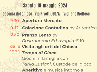 Vi aspettiamo al Chioso in via Rivetti n°50/A tutto il giorno sabato 18 Maggio.