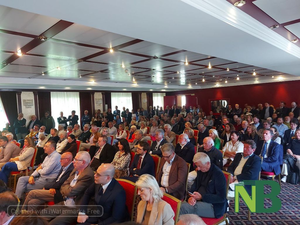 Sala dell’Agorà Palace Hotel gremita questa sera, venerdì 17 maggio, per la conferenza del Ministro della Giustizia Carlo Nordio, momento conclusivo della giornata biellese del Guardasigilli che ha fatto visita a Tribunale e Carcere di Biella.