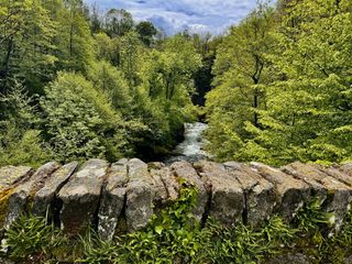 Tra un moccolo e l'altro ed un po' di spintage qua e la, incrociamo finalmente una mulattiera... peccato che sia quella dell'ultima uscita che già avevamo sperimentato con pendenze oltre il 30%... ma almeno il sentiero c'è. Le batterie reggono (per fortuna) e sbuchiamo nei pressi delle Sette Fontane dove la sosta alimentazione deve fare i conti con la temperatura: giornata freddissima per essere già nmaggio. Traverso con ancora uno sforzo di motore fino all'altare Frassati e poi traverso sotto Alpe Giass per scendere lungo il divertente sentiero fino al Tracciolino e poi finalmente ad Oropa ad aspettare l'impresa di Pagacar (fenomeno!). Altro freddo nell'attesa quindi rientro per il single trek della pineta..sempre divertente.
