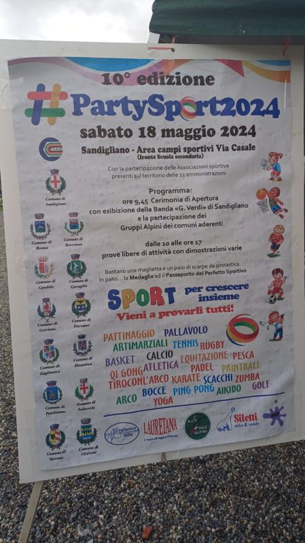 Il Party Sport si conferma un grande momento di festa e un evento di grande successo. La 10° edizione ha avuto inizio questa mattina, 18 maggio, nell'area centrale di Sandigliano, paese ospitante della rassegna di quest'anno.