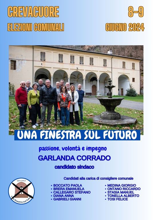 Con la lista “Una finestra sul futuro”, Corrado Garlanda si candida a Sindaco alle elezioni amministrative dell’8 e 9 giugno.