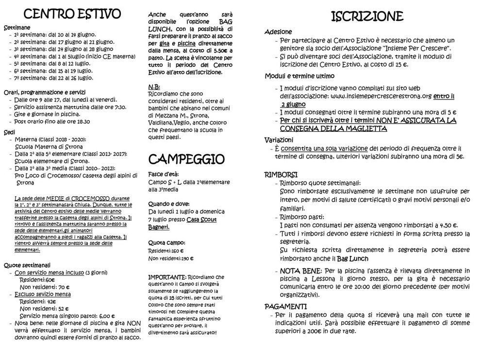 La sede delle MEDIE di CROCEMOSSO durante la 1°, 2° e 3º settimana sarà chiusa. Dunque Il ritrovo e l'assistenza mattutina e le attività saranno alla scuola elementare di Strona.
