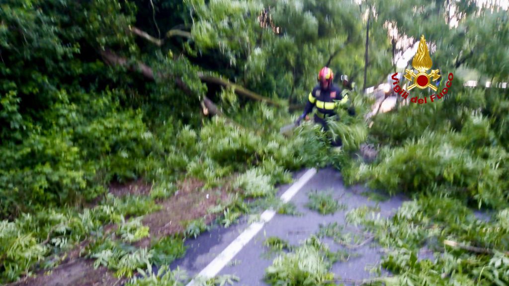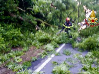Nella caduta, l'albero ha urtato un mezzo pesante di passaggio che ha riportato lievi danni. Arrivata sul posto, la squadra ha provveduto, grazie l’ausilio di motoseghe e roncole, a liberare la strada per riattivare la circolazione. La chiamata di intervento è stata effettuata dalla Polizia di Stato.