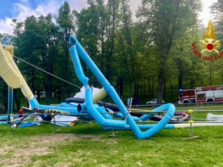 Nel tardo pomeriggio di oggi 26 maggio i Vigili del Fuoco di Biella sono intervenuti ad Oropa perché la “famosa” bicicletta gigante è implosa nel prato delle oche.