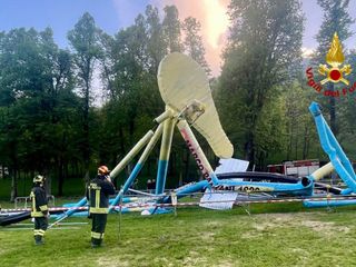 L'area tutto attorno alla maxi bicicletta del Giro d'Italia che ieri è crollata travolgendo alcune persone è stata posta sotto sequestro.