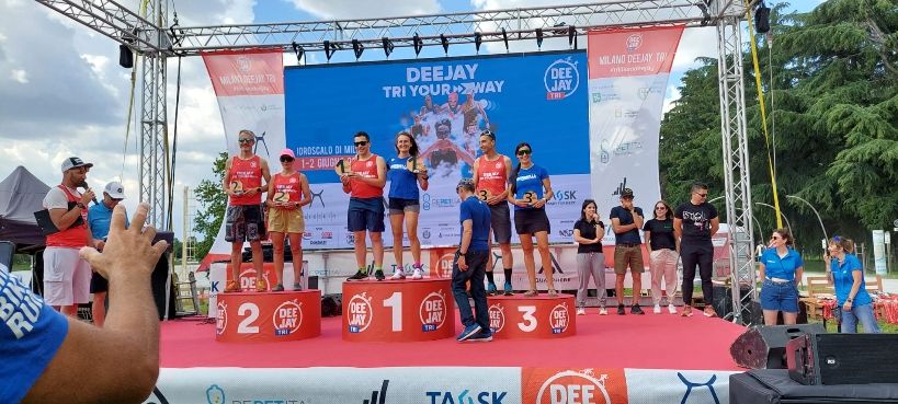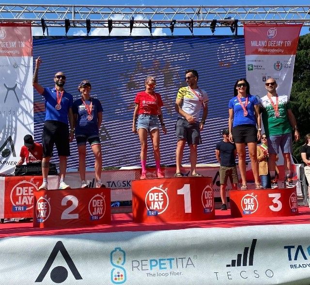 Sabato 1 Giugno sulla linea di partenza il nostro Fabrizio Forzan si è cimentato nella distanza Olimpica 1500 m di nuoto 40 km in bici e 10 km di corsa. Domenica 2 Giugno ben 20 dei nostri atleti hanno gareggiato nella distanza super Sprint e Sprint. La distanza Sprint 750 m di nuoto 20 km in bici da 5 km di corsa può sembrare una gara "corta " invece è una gara molto adrenalinica da fare sempre al massimo delle proprie forze. Approfittando della Deejaytri abbiamo svolto anche la nostra gara sociale, da sottolineare il primo posto di Andrea Spezzano. Per quanto riguarda i risultati di categoria dello Sprint si sono aggiudicati i seguenti podi: Andrea Valdani 3° della Categoria S4, Matteo Prina Mello 2° della categoria M2, Angela Fogarolli 3° della categoria M2, Silvia Solei 2° della Categoria M4 e Dario di Benedetto 3° della Categoria M6.