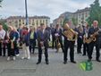 Dopo il ritrovo alle 18 sotto i portici di palazzo Oropa si è formato il corteo che ha raggiunto il monumento ai Caduti per depositare una corona d'alloro sulle note della Banda Giuseppe Verdi – Città di Biella.