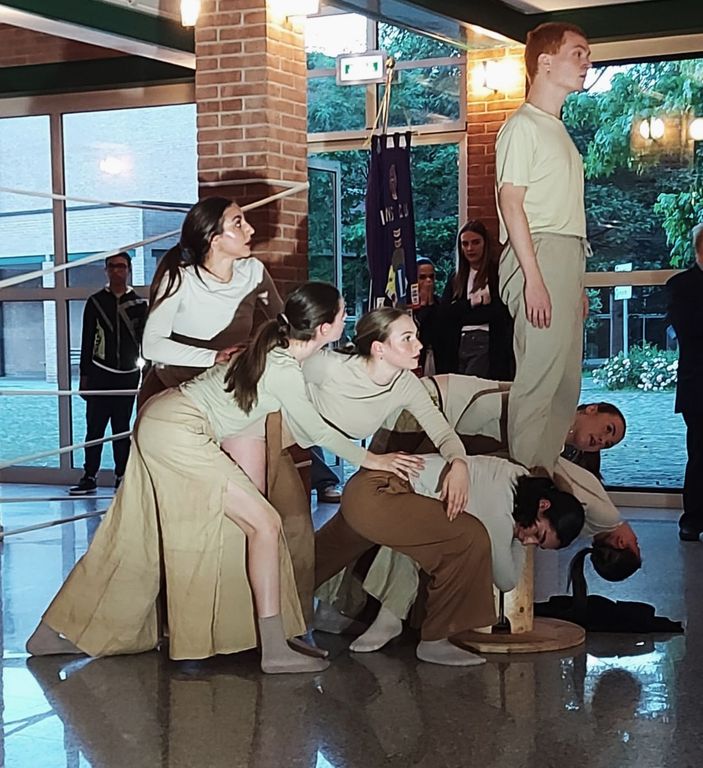I danzatori, Alessia Basile, Rachele Balocco, Arianna Busso, Marta Camerotto, Zoe Cristofanello, Margherita Ferraioli e Leonardo Romano, su coreografie di Cristiana Valsesia, hanno indossato le camicie e i camicioni ampi come babydoll (in Seacell, un tessuto proveniente dalle alghe dei Mari del Nord) firmati dagli stilisti e docenti del TAM Andrea De Marco e Stefano Ughetti. Con l'occasione il Tam ha esposto anche alcuni capi di maglieria coloratissimi elaborati dagli studenti dell'istituto di moda di Biella, e un anello con alcuni disegni di gioielli eseguiti dagli studenti del GEM, la scuola orafa con sede a Valenza.