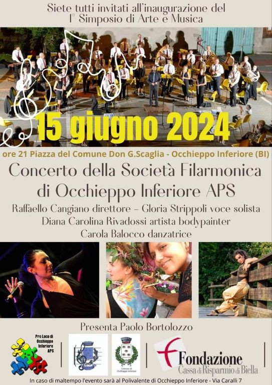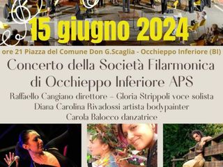 Il Concerto della Società Filarmonica di Occhieppo Inferiore diretto da Raffaello Cangiano con la voce solista di Gloria Strippoli e accompagnata dalla danzatrice Carola Balocco e dalla performance della artista bodypainter Diana Carolina Rivadossi, ha reso magica la serata di ieri, 15 giugno, al Polivalente dove l'evento è stato ricollocato a causa del meteo inclemente. Pubblico entusiasta che ha manifestato aperto consenso al Sindaco sui social per l'iniziativa messa in campo.