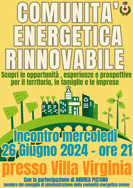 Relatore della serata Andrea Pistono, membro del consiglio di amministrazione della comunità energetica Oremo il quale affronterà il tema per spiegarne opportunità, esperienze e prospettive per territorio, famiglie ed imprese