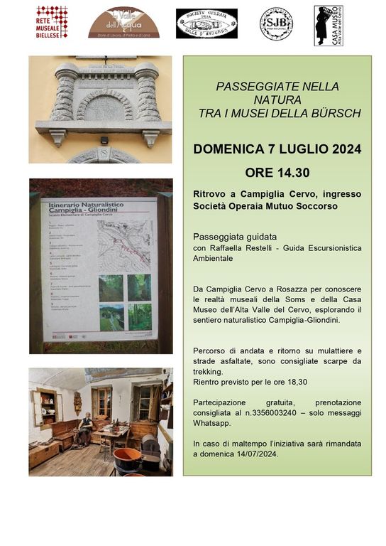 La prima esperienza è prevista Domenica 7 luglio 2024 con ritrovo davanti alla Società Operaia di Mutuo Soccorso di Campiglia Cervo alle 14.30.