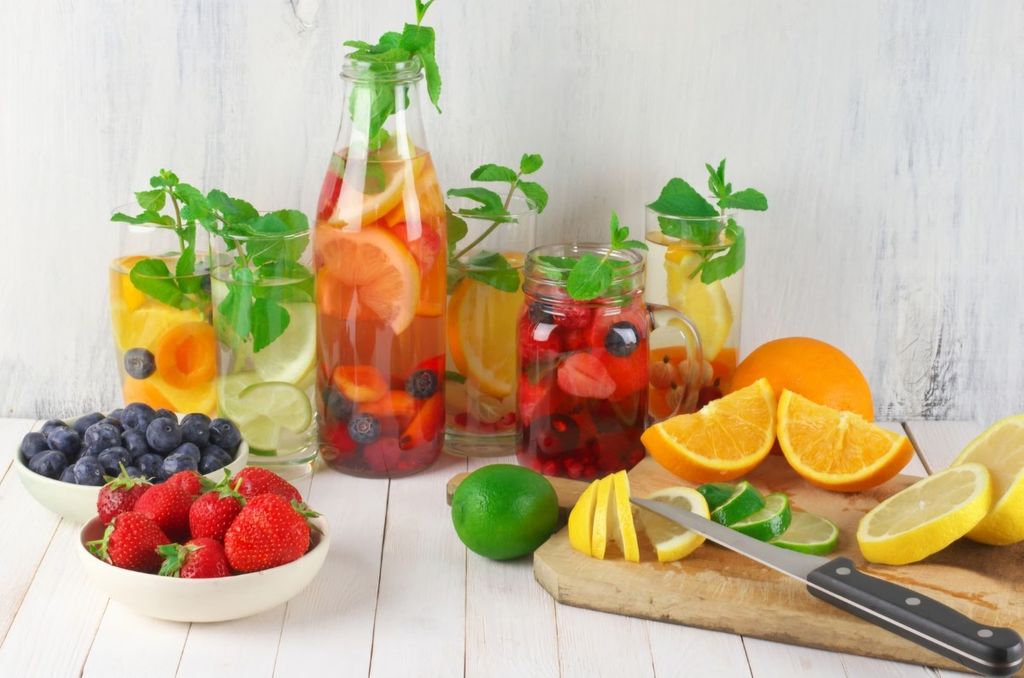 È sufficiente mettere in una caraffa dei pezzetti di frutta e aggiungere a piacere erbe aromatiche come basilico, menta, salvia e rosmarino.