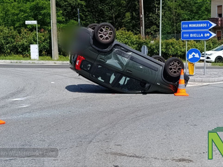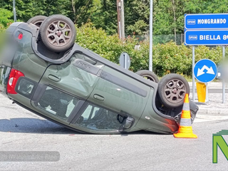 Scontro tra due auto alla rotonda della Settimo Vittone, una si ribalta completamente. È successo nella mattinata di oggi, 8 luglio, nel comune di Mongrando.