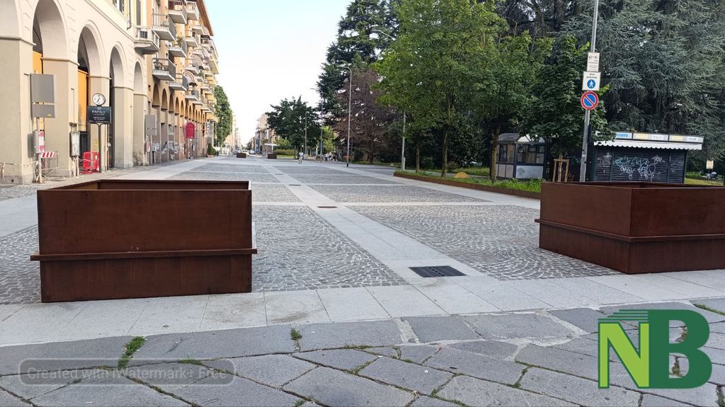 Via i "vasoni" che davano sulla rotonda con via Lamarmora e via Torino e su viale Matteotti, nella nuovissima piazza Vittorio Veneto a Biella sono arrivati grandi vasi in corten, in linea con l'arredo scelto per via Italia e Riva dall'amministrazione Cavicchioli.