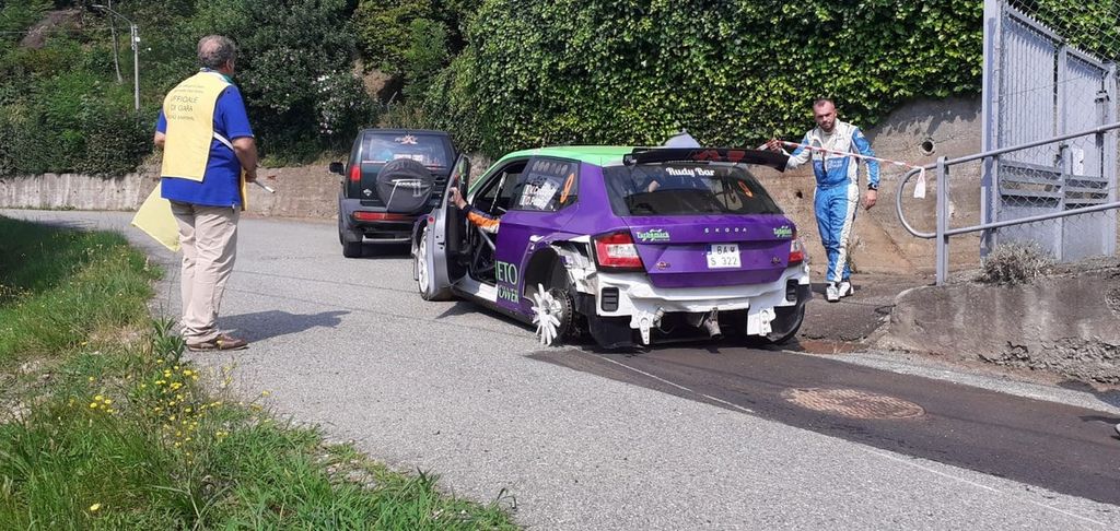 La foga, la voglia di correre, di provare la macchina al meglio...l'esatta dinamica dell'accaduto è ancora da stabilire, ma a volte l'emozione può giocare brutti scherzi e al 37° Rally Lana, nella mattina di oggi venerdì 19 l' equipaggio Ceccato-Pozzi è uscito di strada durante lo shakedown a Tollegno, e l'auto ha perso una ruota.