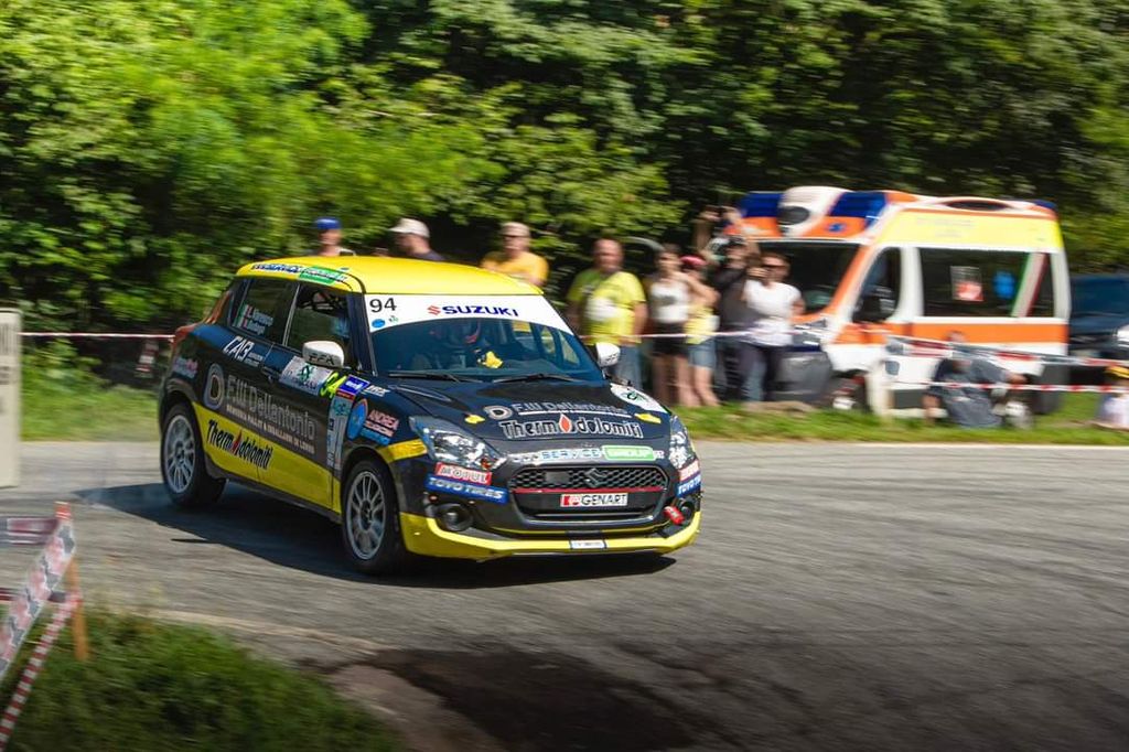 Nicolò Bottega a fianco di Lorenzo Varesco, vincono entrambe le speciali con la loro Suzuki Swift 1.0 Turbo gommata Toyo, e si ritrovano in 44^ posizione.