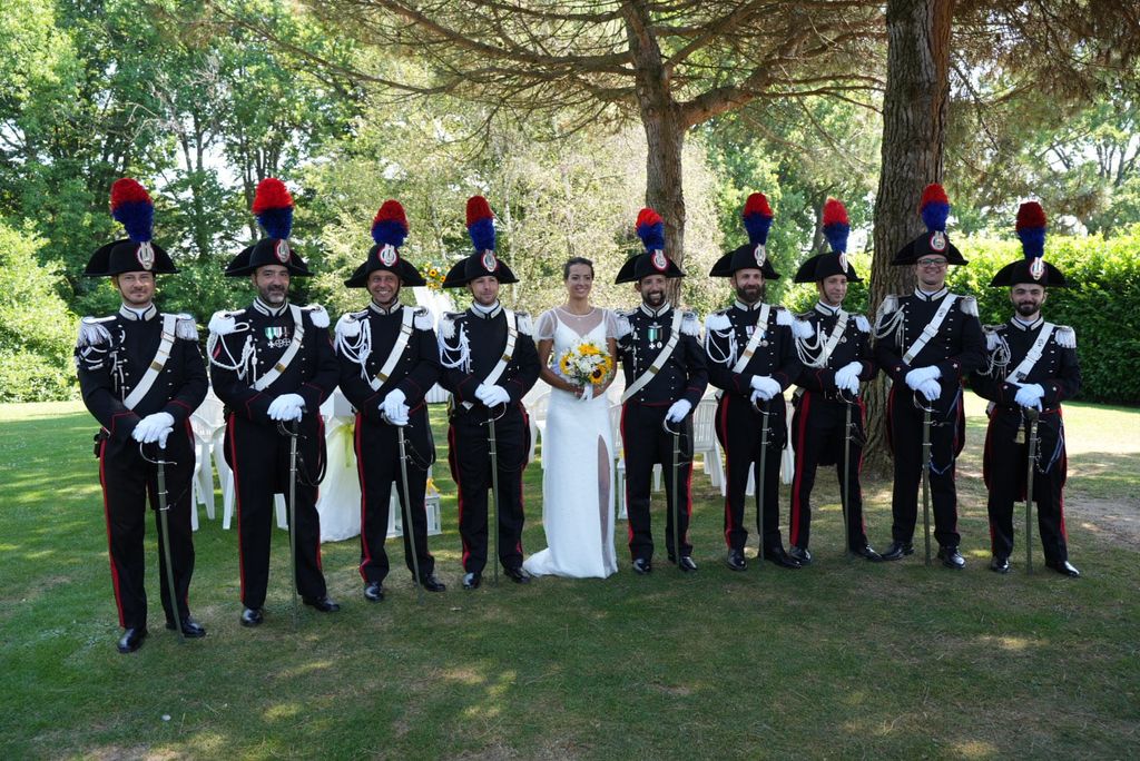 Amici e parenti hanno festeggiato gli sposi dopo la cerimonia di venerdì in comune a Cossato, e nella mattina di oggi domenica 28 luglio in loro onore l'immancabile picchetto d'onore.