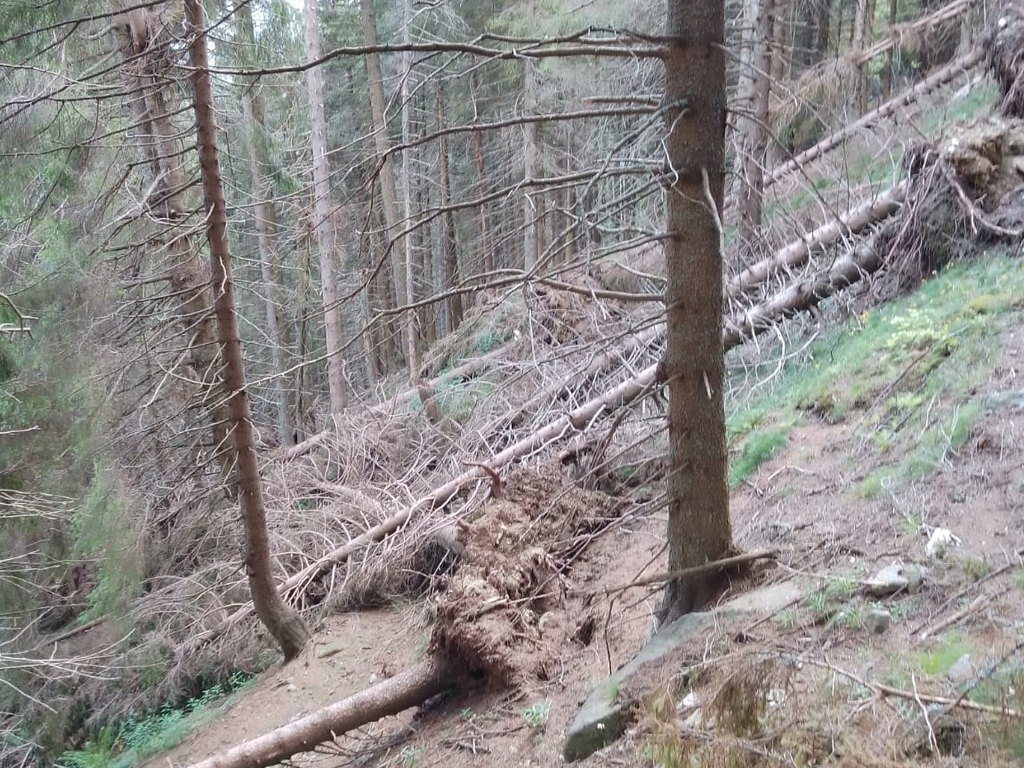 Alberi sradicati e cartelli piegati dalla forza del vento. È ciò che alcuni escursionisti hanno documentato sul sentiero Pineta (D17), dopo l'ondata di maltempo degli scorsi mesi.