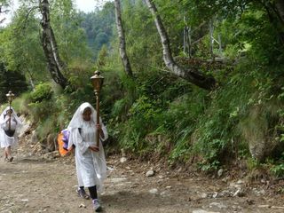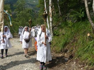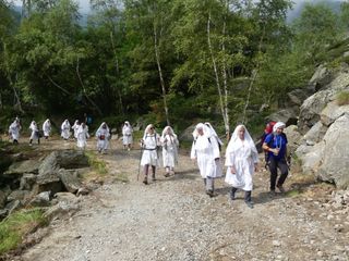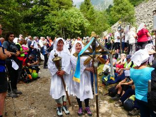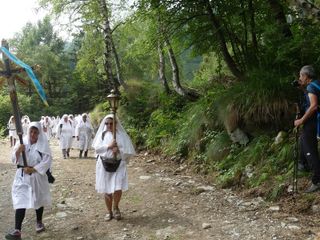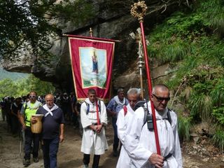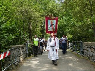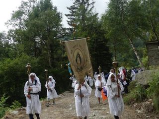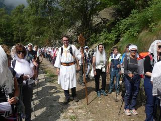 "Ciascuno di noi si è messo in cammino per motivi diversi: chi spinto dalla devozione alla Madonna che gli è stata tramandata da secoli di generazioni, chi per un particolare bisogno e per domandare aiuto, chi per ritrovare speranza, chi per ringraziare perché alla Madonna deve molto, per sé e per i propri cari. Tra noi può esserci anche chi ha voluto fare solo un po’ di trekking o per partecipare a un imponente gesto tradizionale, ma tutti, ha ragione il Papa, tutti per cercare una pienezza, qualcosa, Qualcuno che ci riempia, che riempia la nostra vita di senso e di soddisfazione". E' il benvenuto del rettore Don Michele Berchi all’arrivo dei pellegrini della Processione di Fontainemore.