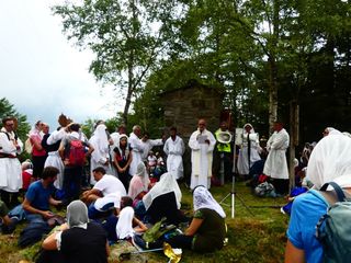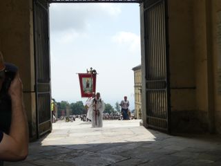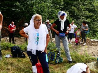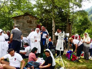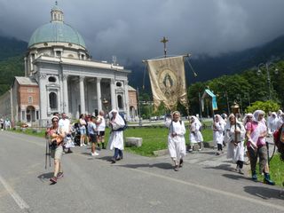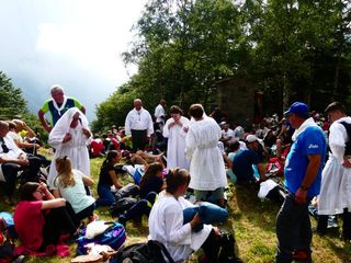 Tanti Biellesi che non hanno partecipato all'intera processione si sono aggiunti all'arrivo ad Oropa per entrare insieme nella basilica nuova per la Santa Messa del mattino, e come da tradizione hanno accompagnato fino al Colle della Barma i pellegrini al ritorno verso Fontainemore anche 4 tecnici del Soccorso Alpino speleologico piemontese delegazione di Biella.