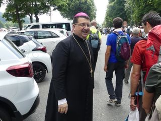 Ad accogliere i fedeli al loro arrivo c'era anche il Vescovo di Biella Monsignor Roberto Farinella.