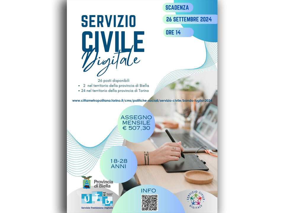 La Provincia di Biella, nell’ambito del progetto “COMMUNITY WELLNESS”, è alla ricerca di n.2 volontari/e tra i 18 e i 28 anni che tramite il servizio di “accompagnamento digitale” favoriranno l’accrescimento di competenze digitali e consapevolezza della cittadinanza nell’uso dei servizi digitali.
