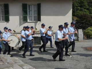 Un pregevole accompagnamento musicale che, assieme alla corale, hanno impreziosito le celebrazioni nella cornice della chiesetta dell' Oratorio.Immancabili i gruppi dei partecipanti in posa sulla scalinata con il "Becco" sullo sfondo.