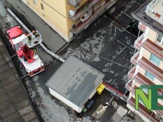 Il violento downburst che si è abbattuto a Chiavazza ha colpito in pieno anche una palazzina di via Lorenzo Cucco. Parte del tetto, infatti, è volata via. Sul posto stanno operando i Vigili del Fuoco con l'ausilio dell'autoscala.