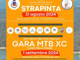 Il weekend proseguirà la domenica mattina alle 9.30 per gli appassionati di MTB XC, chiamati a gareggiare in un percorso di 6km lungo il Lago che si ripeterà in base alle categorie. La competizione, aperta a tutti i tesserati CSAIN e altri enti, prevede un premio per tutti i partecipanti oltre che premi dedicati ai primi di categoria e alle prime 3 società classificate. La Pro Loco offrirà inoltre ulteriori premi e il ristoro casapintese finale.
