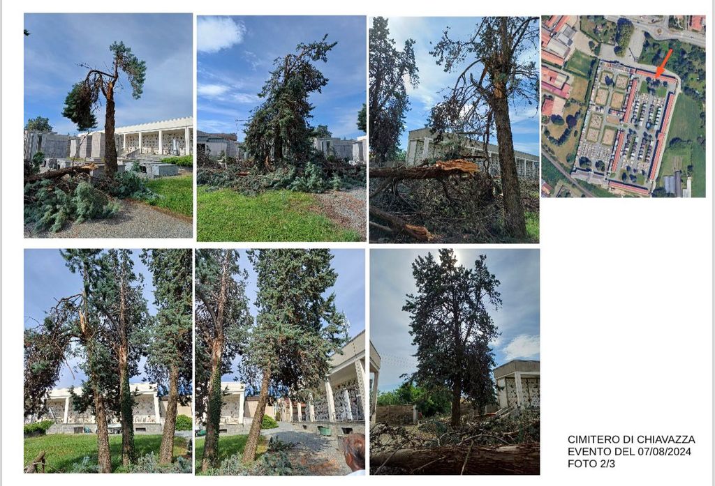 Lo scorso 7 agosto Chiavazza è stata colpita da una tromba d'aria che ha causato diversi importanti danni: in via Cucco ha divelto il tetto di un palazzo, in via Mosca alcuni alberi sono finiti sulle auto in sosta e hanno tranciato i cavi dell'energia elettrica. E nella conta dei danni è finito anche il cimitero, dove diversi alberi sono caduti ed alcuni si sono anche spezzati, ma il comune è già intervenuto per il ripristino delle situazione.
