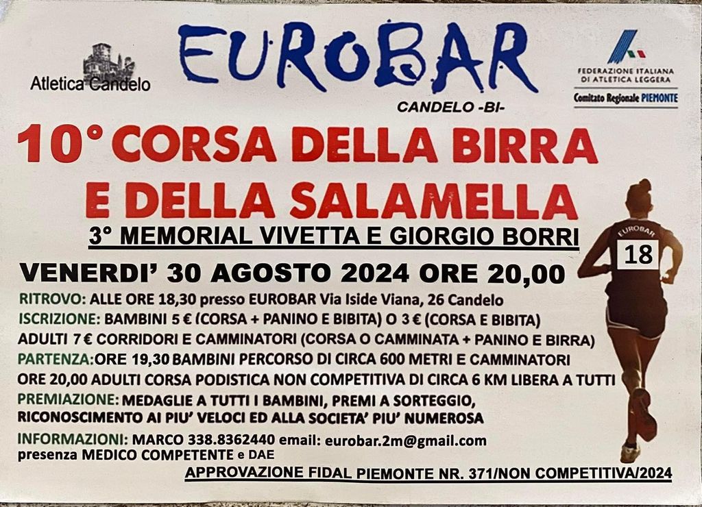 Venerdì 30 agosto ci sarà invece la corsa podistica non competitiva “CORSA DELLA BIRRA E DELLA SALAMELLA” con il seguente programma: