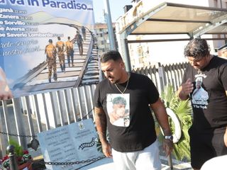 Ci sono i famigliari di Giuseppe Aversa. Anche loro con una maglietta con l'immagine del fratello e il logo della Juve. Insieme depositano un mazzo di fiori in piazza Stazione. Nei giorni scorsi il fratello Edoardo aveva comunicato tutta la sua rabbia: a distanza di un anno non sono ancora riusciti ad avere gli effetti personali del fratello, poche notizie, la verità è ancora troppo lontana, si sentono abbandonati.