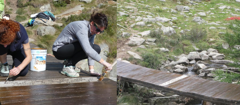 Bella iniziativa della Pro Loco di Sagliano Micca. Domenica scorsa volontari e famiglie hanno raggiunto l'alta Valle Cervo per sistemare la passerella in legno che conduce al Rifugio del Lago della Vecchia.