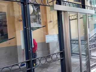 Via le ragnatele dai vetri, dai travi e dai lampioni, pulizia del pavimento all'interno delle cabine, ai vetri stessi, agli zerbini.