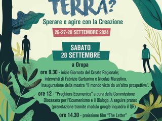 La giornata di sabato 28 settembre sarà dedicata alla Celebrazione della Giornata Ecumenica Regionale per la Salvaguardia del Creato. Dopo il ritrovo alle 9.30 a Oropa, Fabrizio Garbarino e Nicolas Marzolino guideranno un dibattito su terra e guerra. La mattinata proseguirà con l'inaugurazione della mostra “Il mondo visto da un’altra prospettiva” e con una preghiera ecumenica alle 12.00. Nel pomeriggio, alle 14.30, sarà proiettato il documentario “The Letter”, ispirato all'enciclica Laudato si' di Papa Francesco.