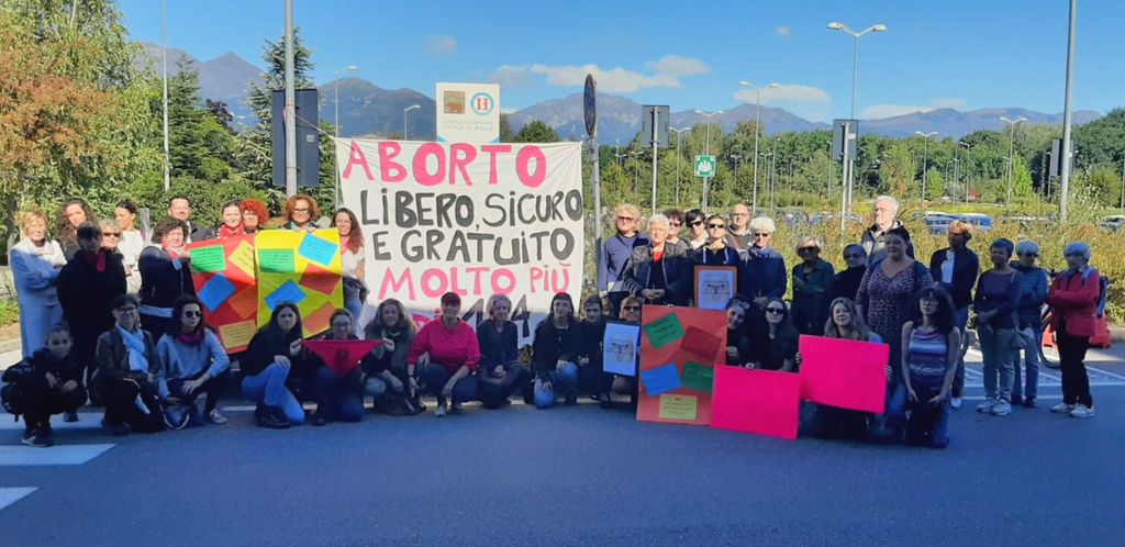 "Aborto Libero, sicuro e gratuito", si legge su di uno striscione. A organizzare il presidio oltre ai sindacati, Le Parole Fucsia, Democratiche, Voci di Donne, Il Groviglio, Comitato Pride, Underground e Arci Biella.