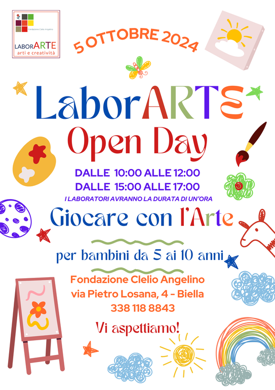Sabato 5 ottobre, presso la sede della Fondazione Clelio Angelino in via Losana, 4 a Biella, si svolgerà l'Open Day dedicato ai laboratori d'arte per bambini LaborARTE.